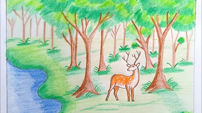 How To Draw Forest Scenery With Animals Forest Scenery Drawing Youtube
